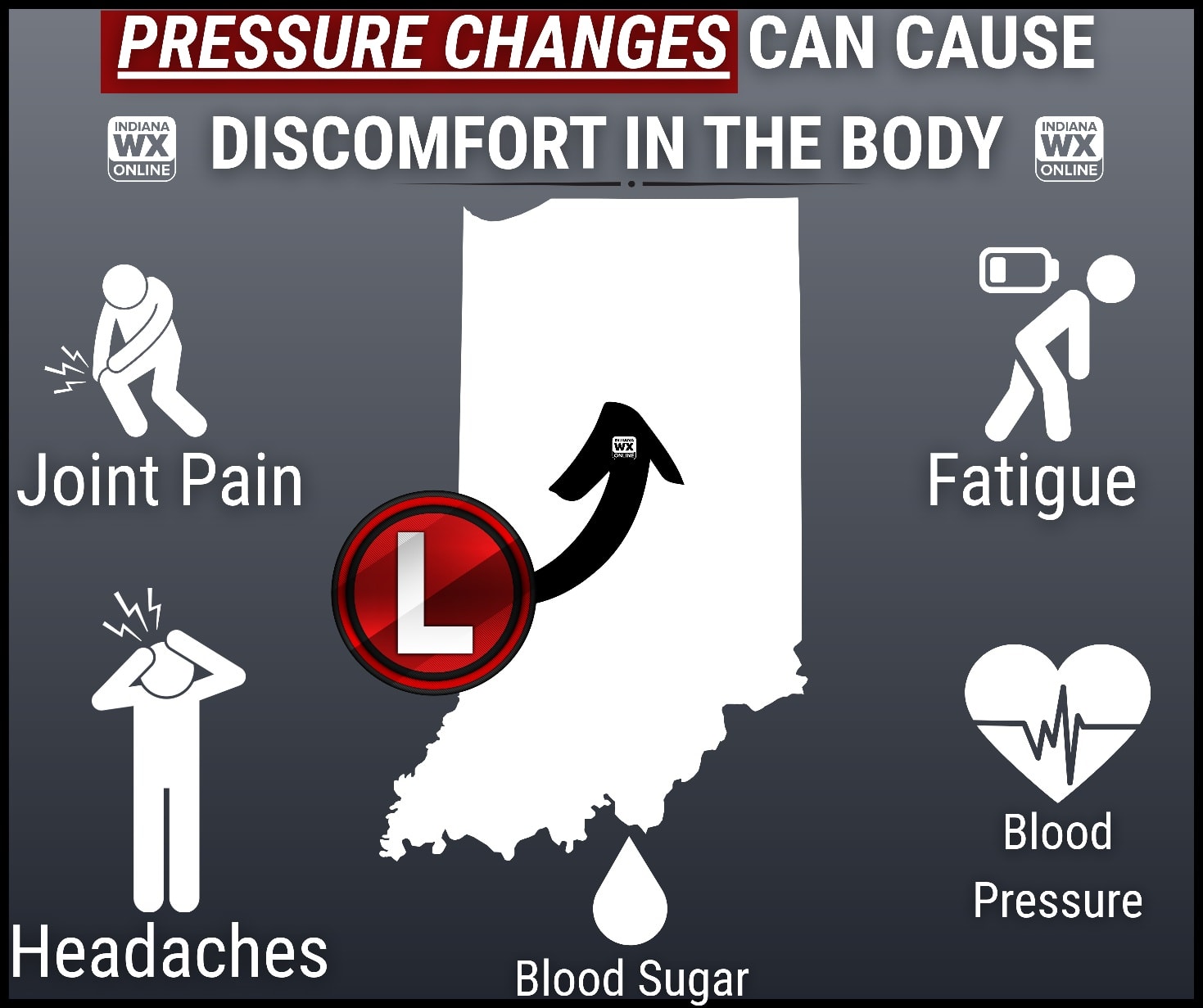 Indiana Weather Online has announced on Facebook that “a pressure change is on the way this weekend!  Our first larger pressure change in some time will move across the region as a Canadian Cold Front moves through! Pressure changes can affect some groups of people!”