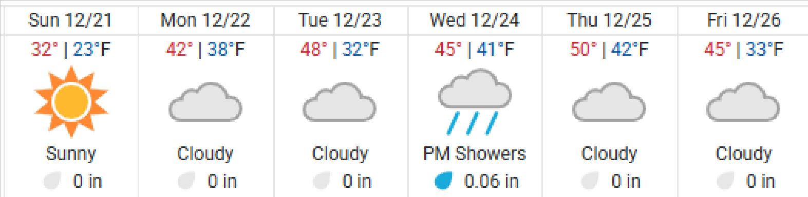 The weather for the next days leading up to and including the day after Christmas is just unbelievable. No white Christmas this year. For Christmas Eve, it’s looking more like a wet Christmas.