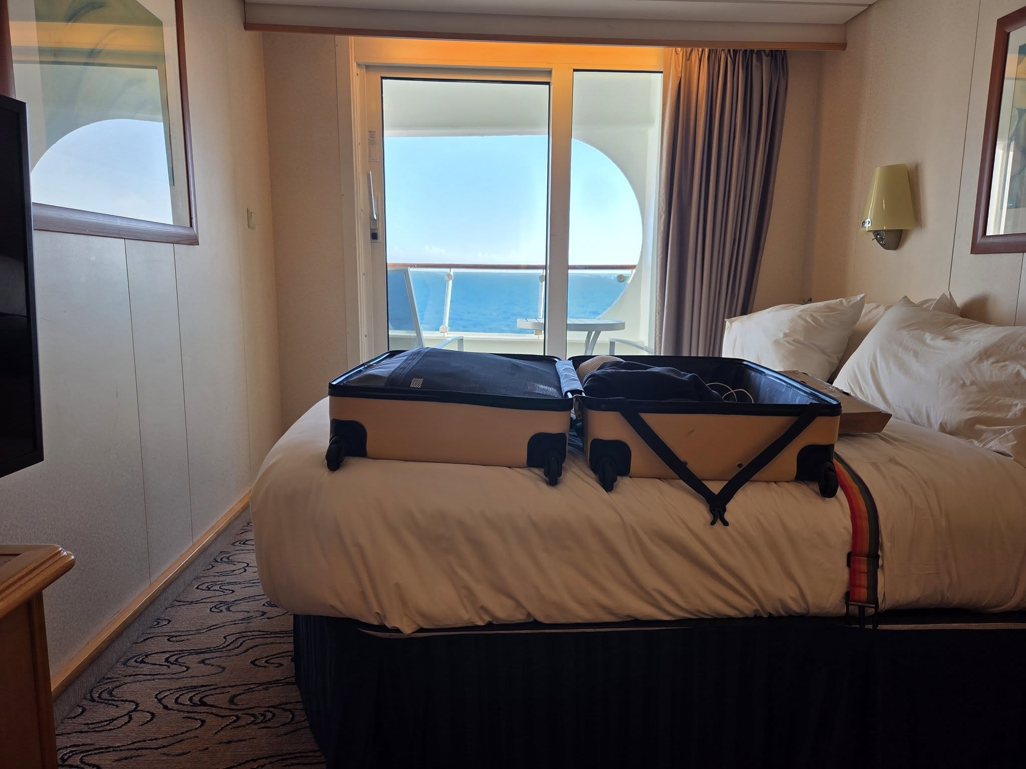 After dinner, I came back to my stateroom and packed my check in luggage.  I put it outside my room door.  It will be picked up around 10:00 p.m., taken to the hold, and taken off the ship tomorrow morning and place in an area reflecting its number:  20.  I’m part of Group 20 to get off the ship tomorrow.  Tentative time for disembarking is 8:45 a.m.