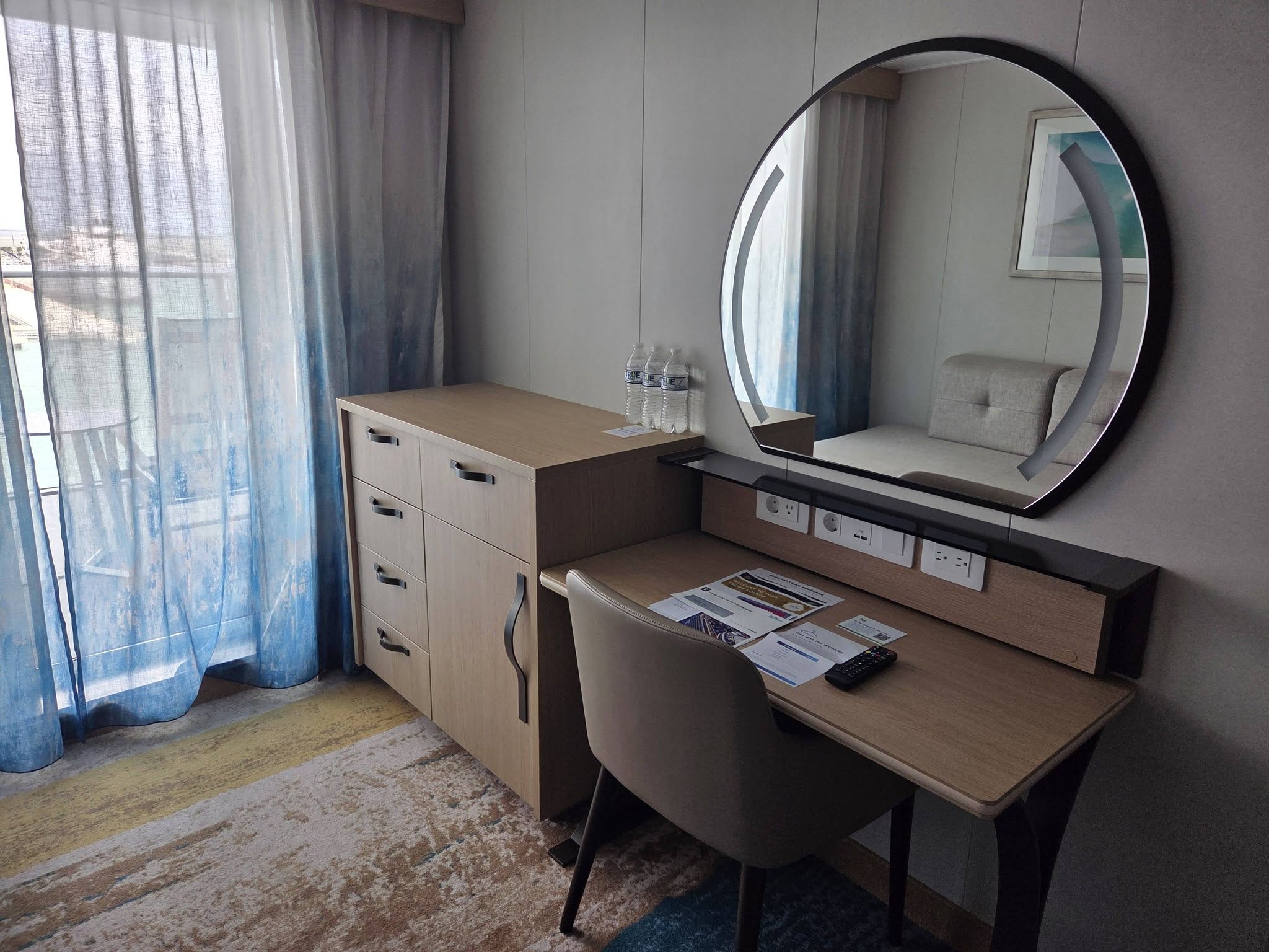 My room . . . wow . . . what can I say? It’s really beautiful as cruise ship rooms go.