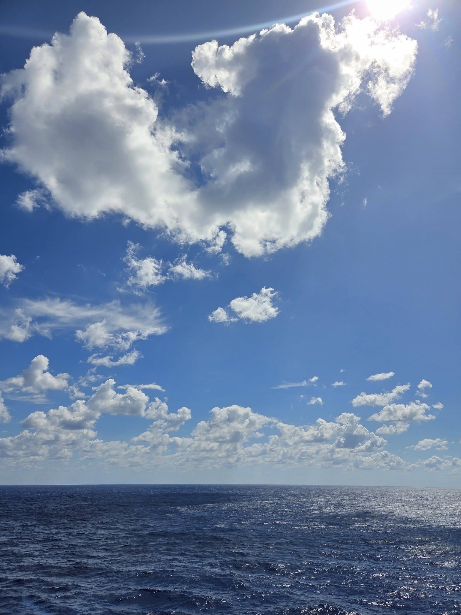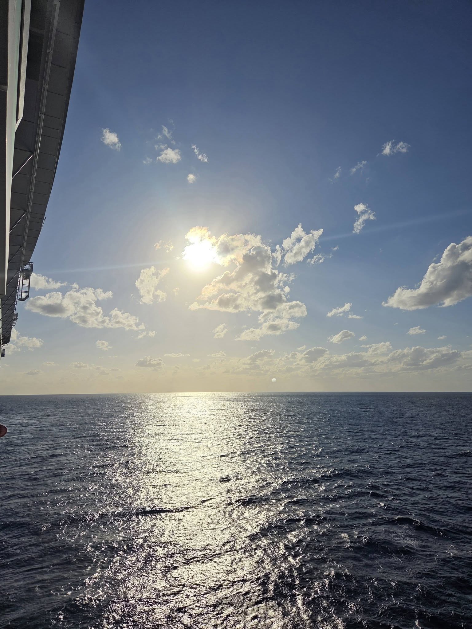 I went back out to my balcony to enjoy the ocean for the sea day.  I could hear music from the decks above but I wanted to spend some time alone with God.  I did a fair amount of griping to Him about how my life has been lately.  You know, sick for Holy Week and the like.  He said, “quitcherbellyaching and look at what I’ve done for you today.”